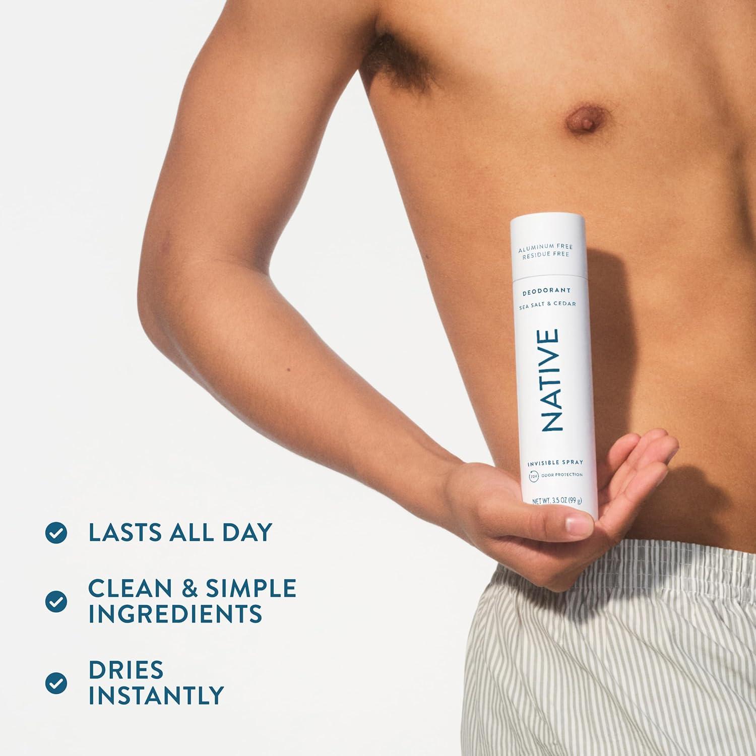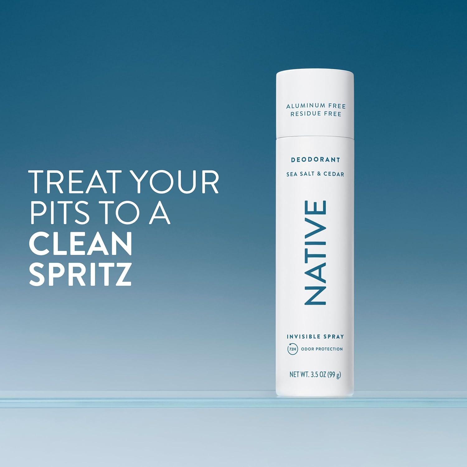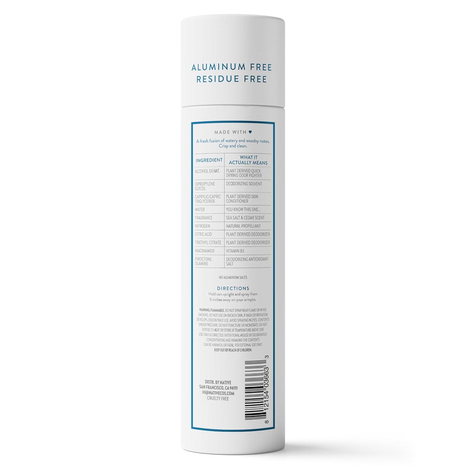 Everything you love about Native Deodorant, now in a light-as-air spray. Native Deodorant Spray for men and women delivers effective odor protection for up to 72 hours. It also doubles as an all-over fragrance spray. Powered by an ozone-friendly natural propellant, this deodorant sprays easily on your underarms and chest for a fragrant pick-me-up. Free of aluminum salts, baking soda, parabens, and talc, Native Deodorant Spray is thoughtfully made with 6 clean ingredients, including plant-based skin conditioners and odor neutralizers. Native Deodorant Spray is also free of hydrocarbon propellants, using the power of nitrogen to release a cool, scented mist that dries on contact. All of the ingredients in this clean deodorant spray work together to keep you smelling (and feeling) fresh. Native: Clean. Simple. Effective. Like all Native products, this stink-fighting deodorant spray provides a delightful personal care experience that really works. Complete your self-care routine with Native's full range of products including hair care, body wash, and moisturizing lotion.