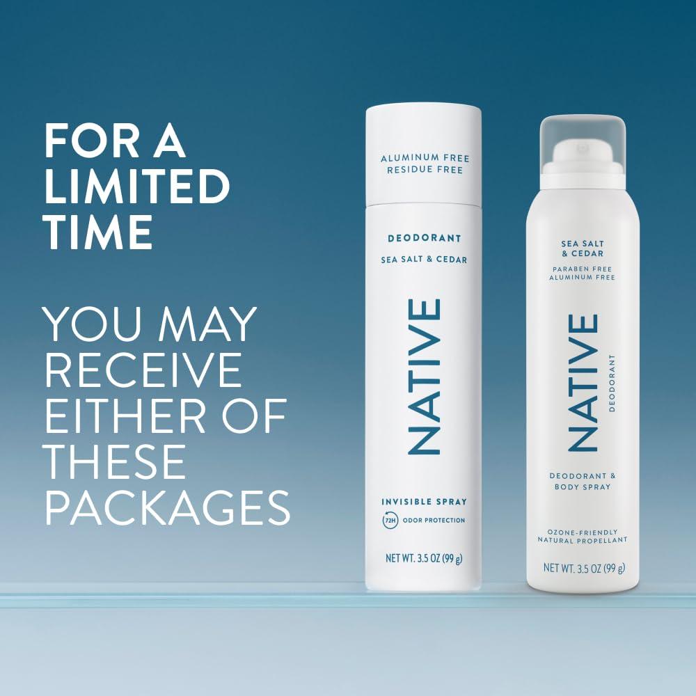 Native Aluminum-Free Deodorant & Body Spray Contains Naturally Derived Ingredients | for Women & Men| Sweet Peach & Nectar, 2.65 oz(Sea Salt & Cedar)