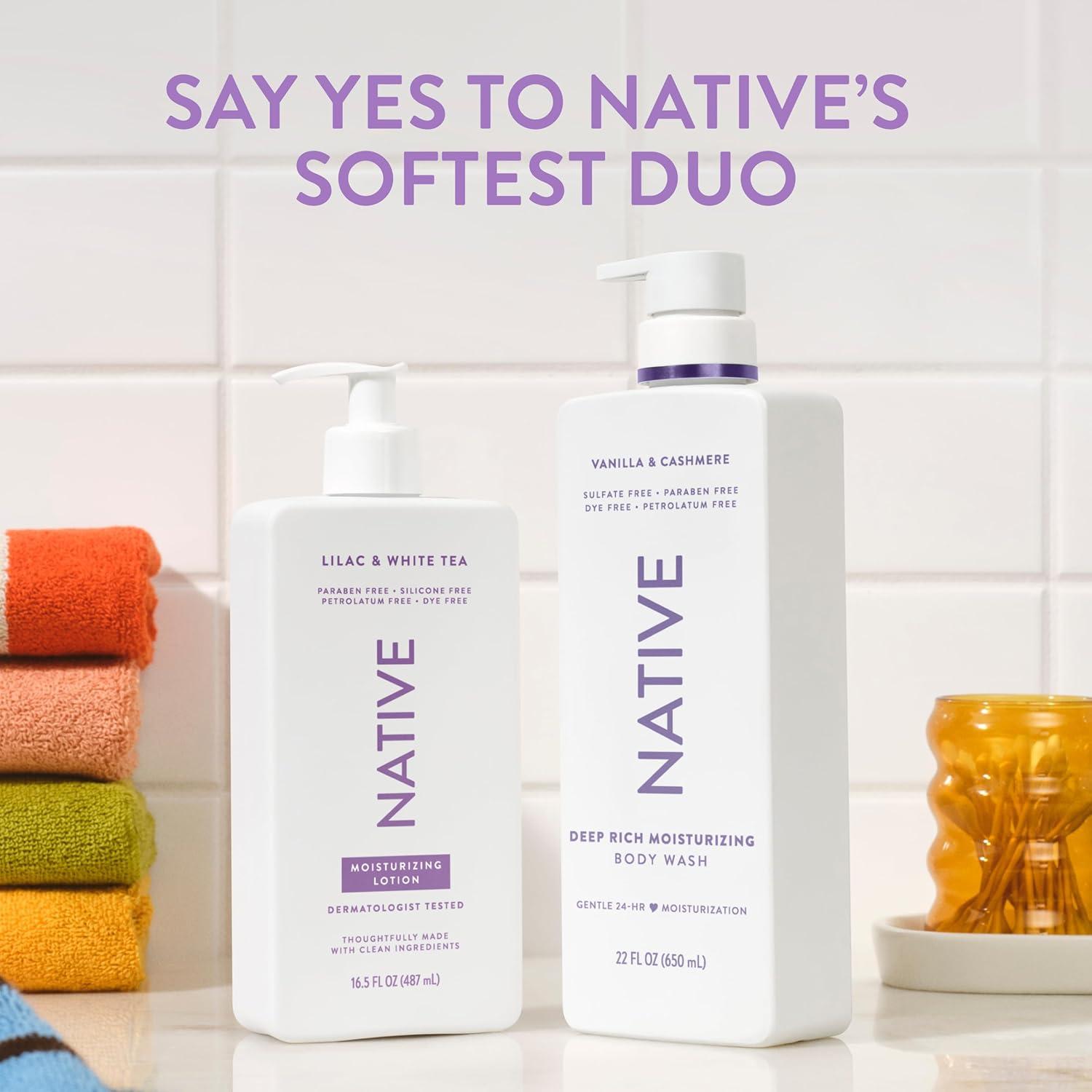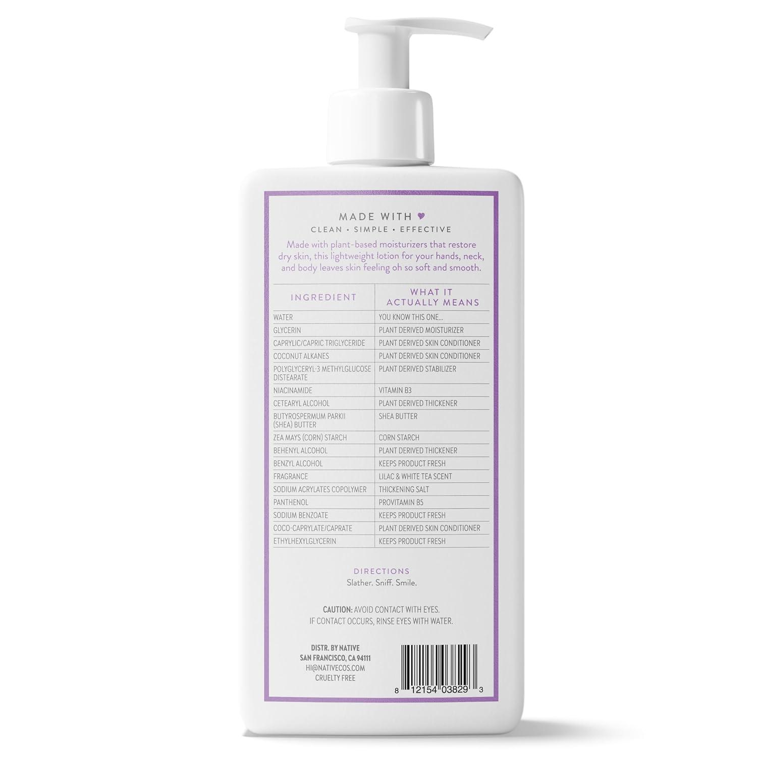 Native Body Lotion Contains Naturally Derived Plant-Based Moisturizers for Women and Men | Restores Dry Skin, Coconut & Vanilla, 16.5 fl oz(Lilac & White Tea)