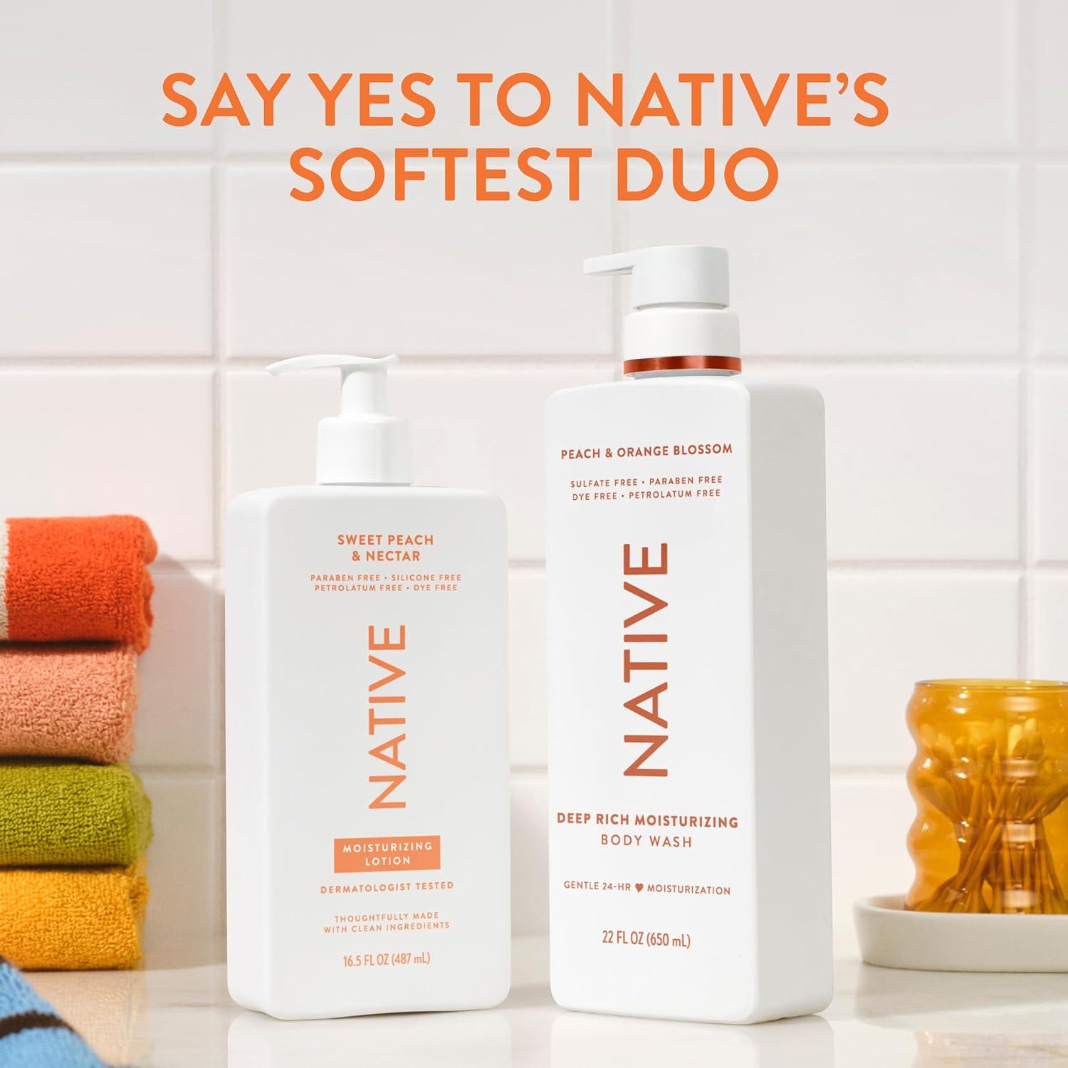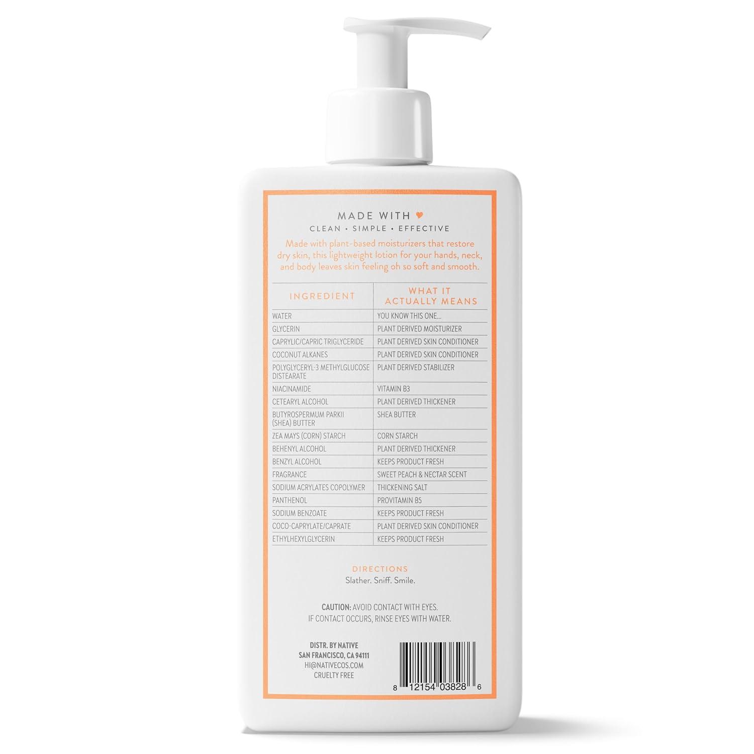 Native Body Lotion Contains Naturally Derived Plant-Based Moisturizers for Women and Men | Restores Dry Skin, Coconut & Vanilla, 16.5 fl oz(Sweet Peach & Nectar)