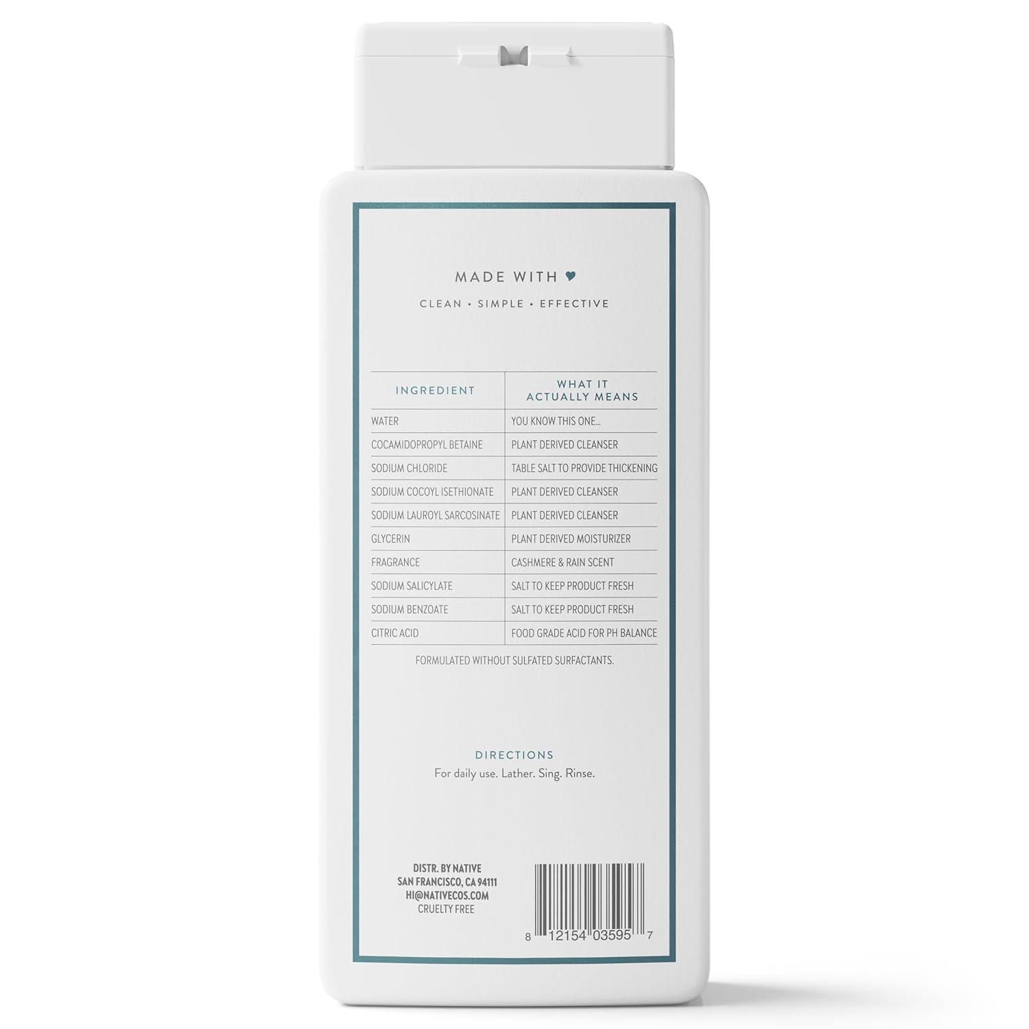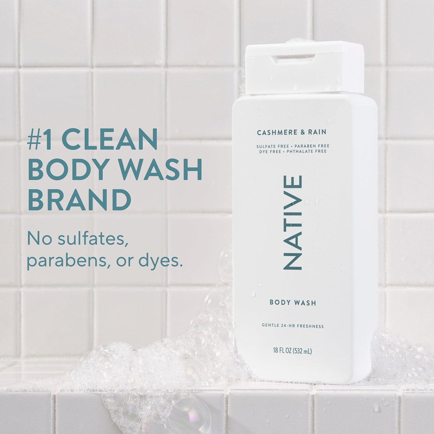 Native Body Wash Contains Naturally Derived Ingredients | For Women & Men, Sulfate, Paraben, & Dye Free Leaving Skin Soft and Hydrating | Cashmere & Rain 18 oz