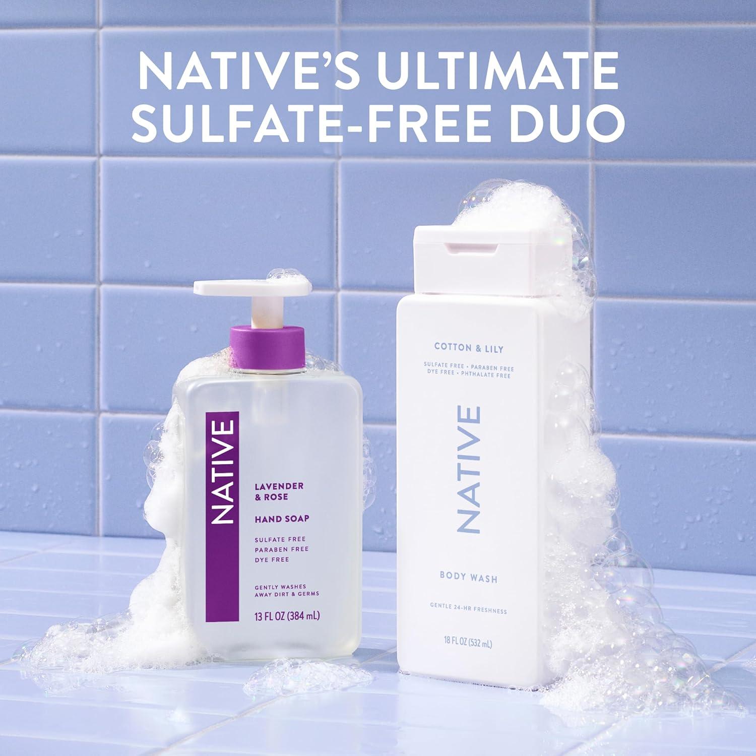 Native Body Wash Contains Naturally Derived Ingredients | For Women & Men, Sulfate, Paraben, & Dye Free Leaving Skin Soft and Hydrating | Cotton & Lily 18 oz