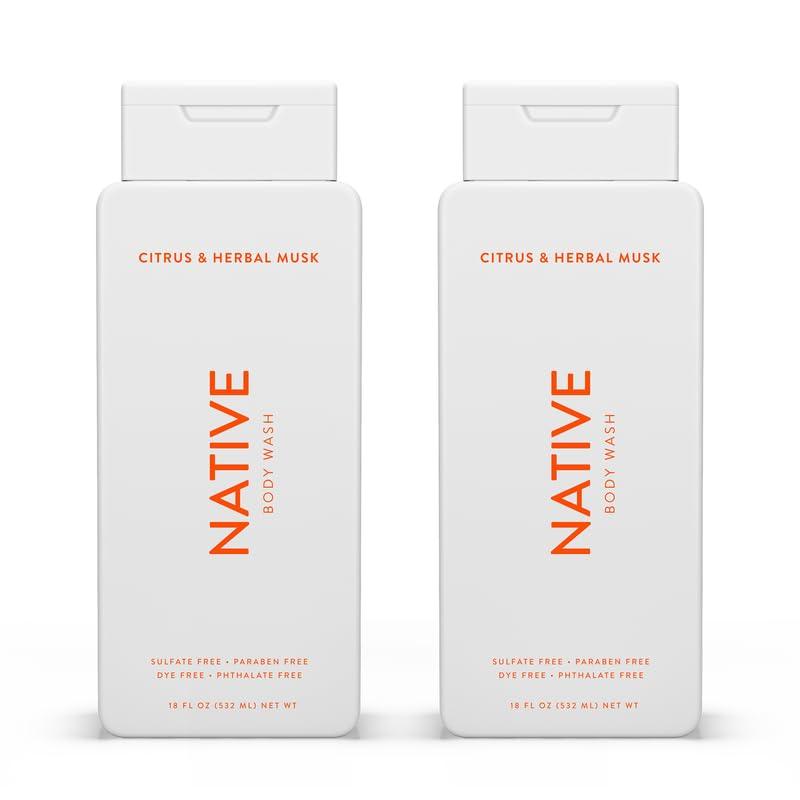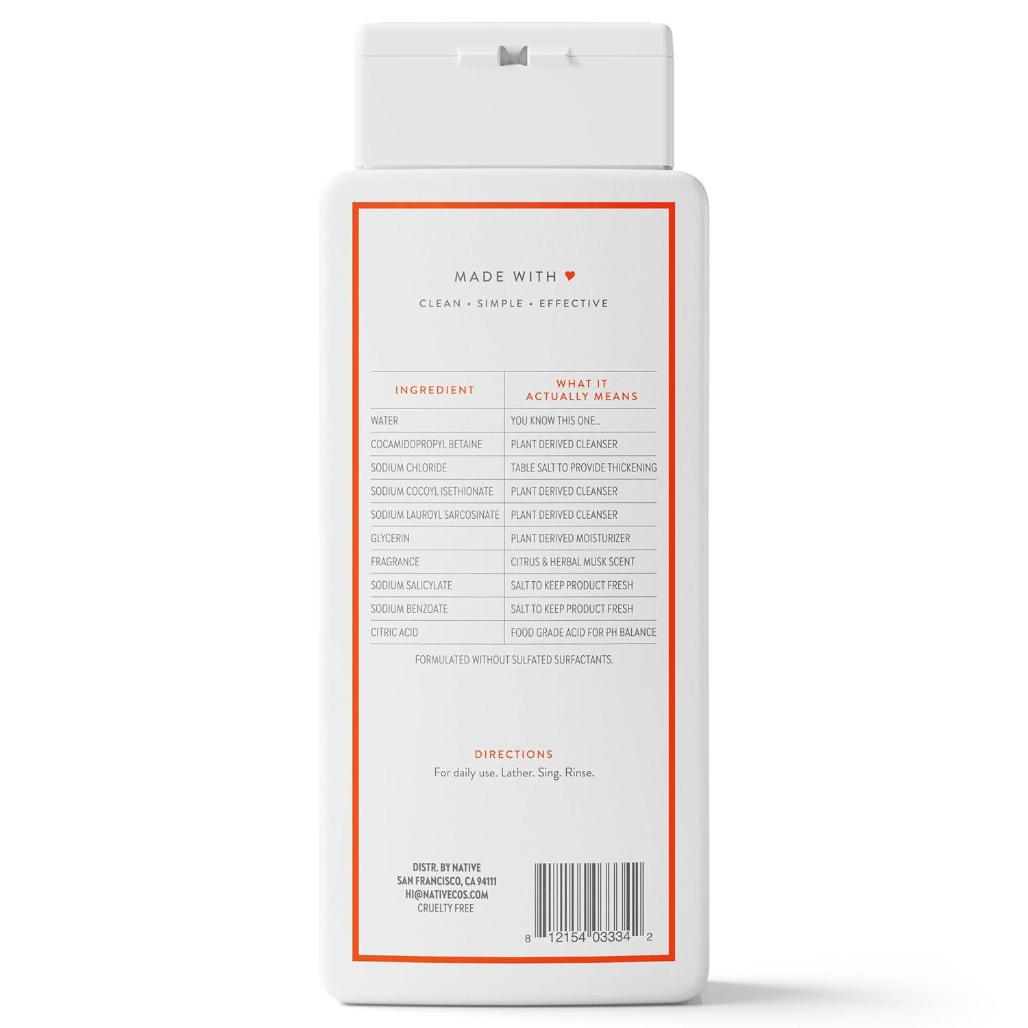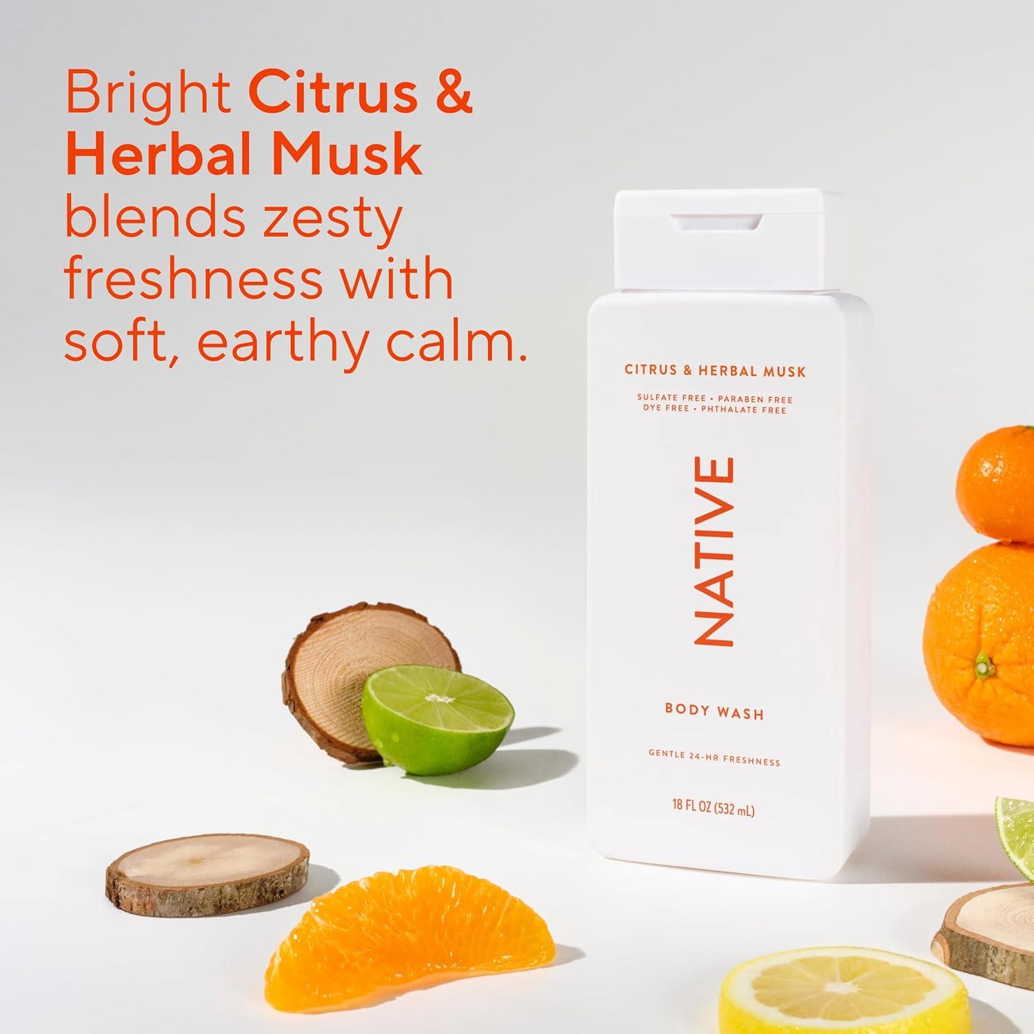 Native Body Wash Contains Naturally Derived Ingredients | For Women & Men, Sulfate, Paraben, & Dye Free Leaving Skin Soft and Hydrating | Grapefruit & Bergamot 18 oz(Citrus & Herbal Musk)