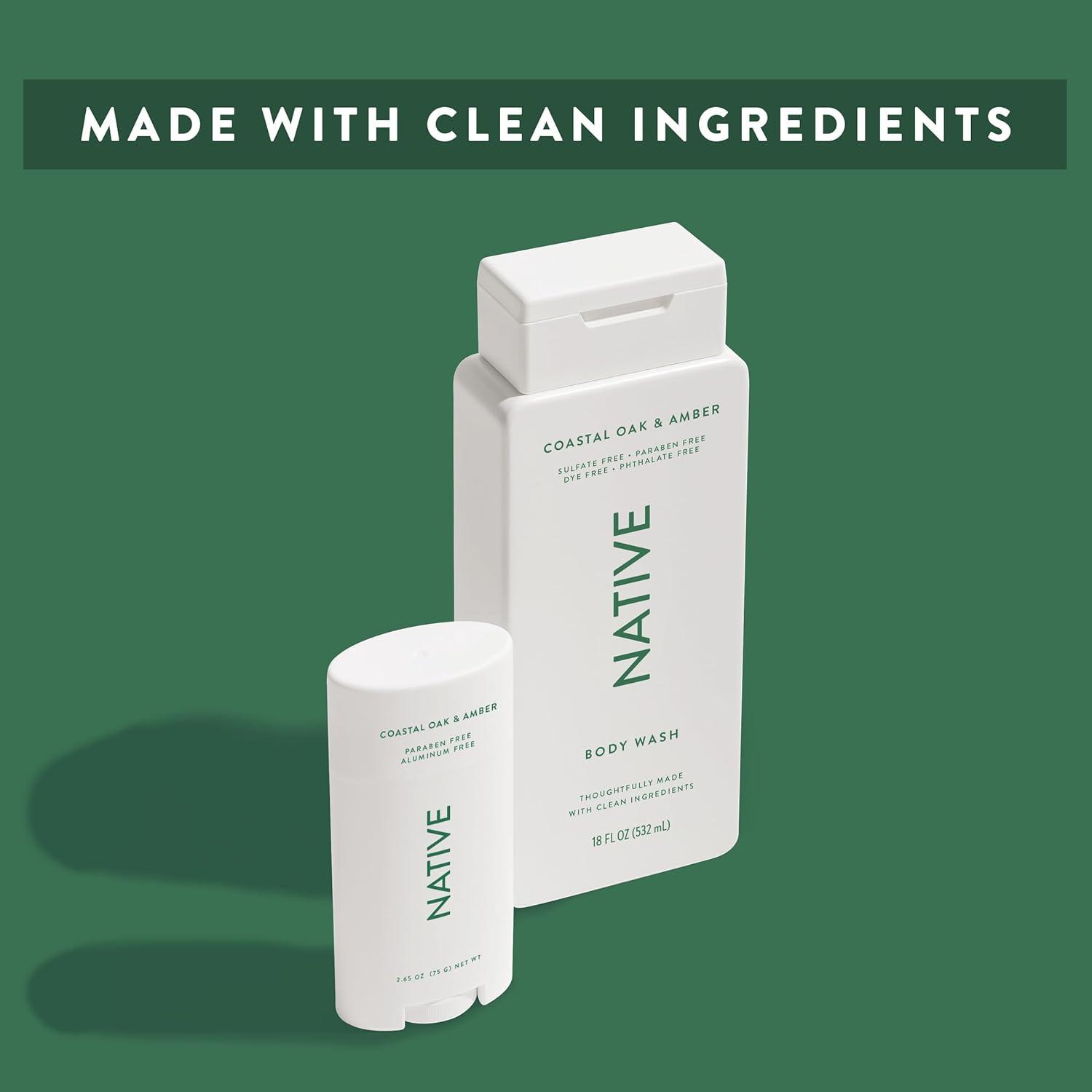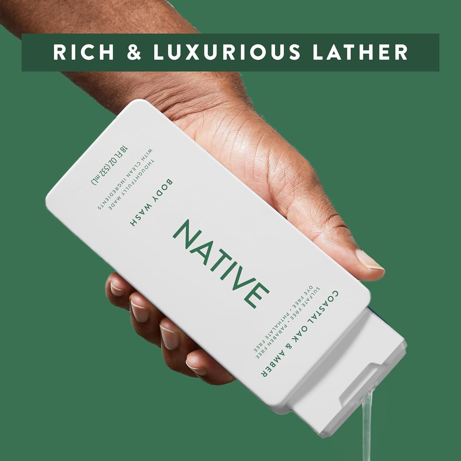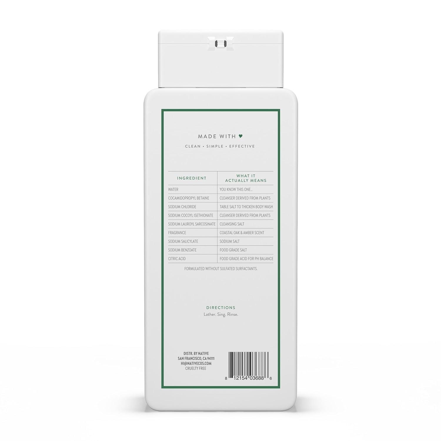 Native Body Wash Contains Naturally Derived Ingredients | For Women & Men, Sulfate, Paraben, & Dye Free Leaving Skin Soft and Hydrating | Grapefruit & Bergamot 18 oz(Coastal Oak & Amber)