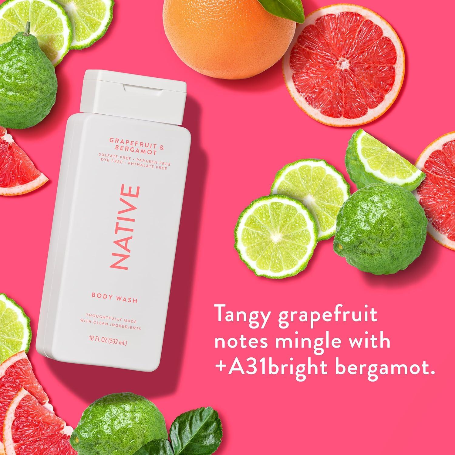 Native Body Wash Contains Naturally Derived Ingredients | For Women & Men, Sulfate, Paraben, & Dye Free Leaving Skin Soft and Hydrating | Grapefruit & Bergamot 18 oz(Grapefruit & Bergamot)