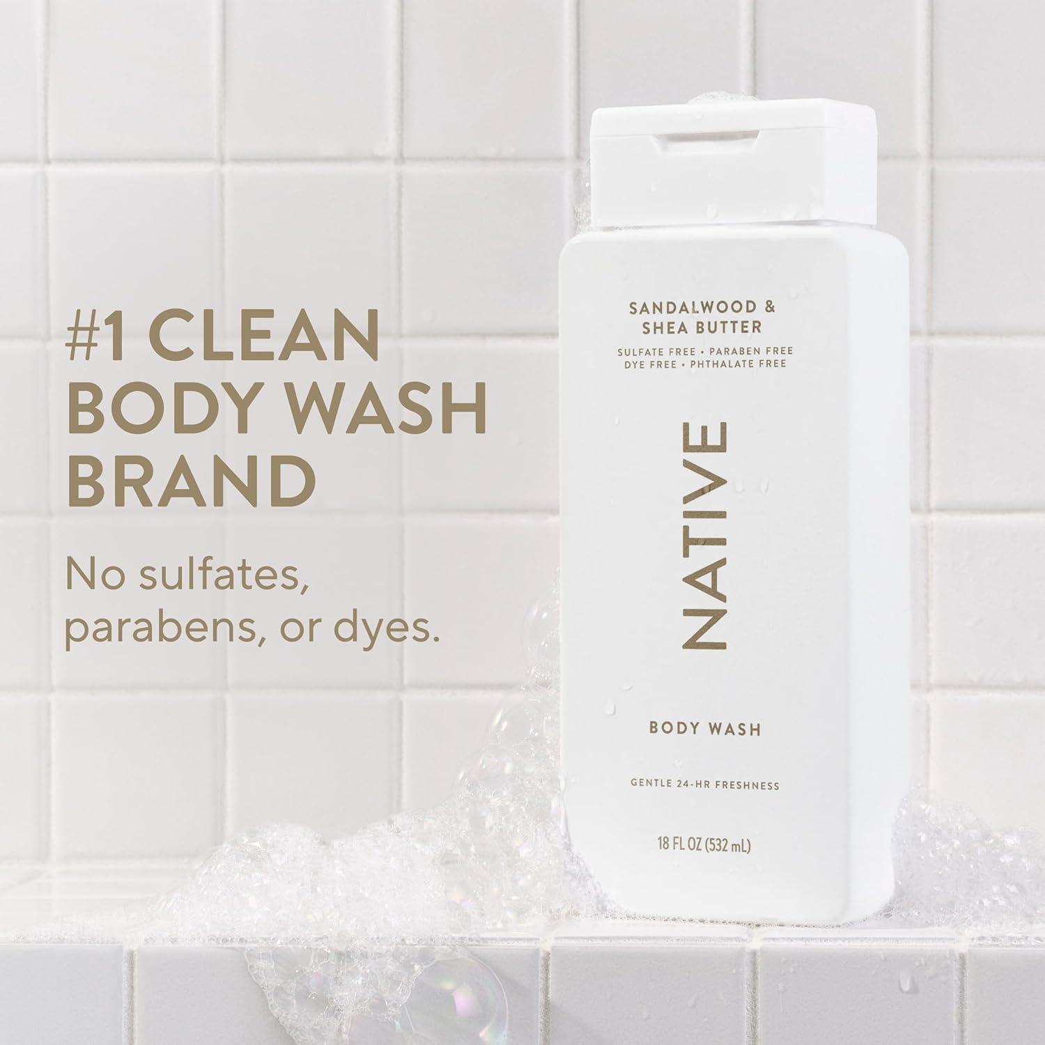 Native Body Wash Contains Naturally Derived Ingredients | For Women & Men, Sulfate, Paraben, & Dye Free Leaving Skin Soft and Hydrating | Grapefruit & Bergamot 18 oz(Sandalwood & Shea Butter)