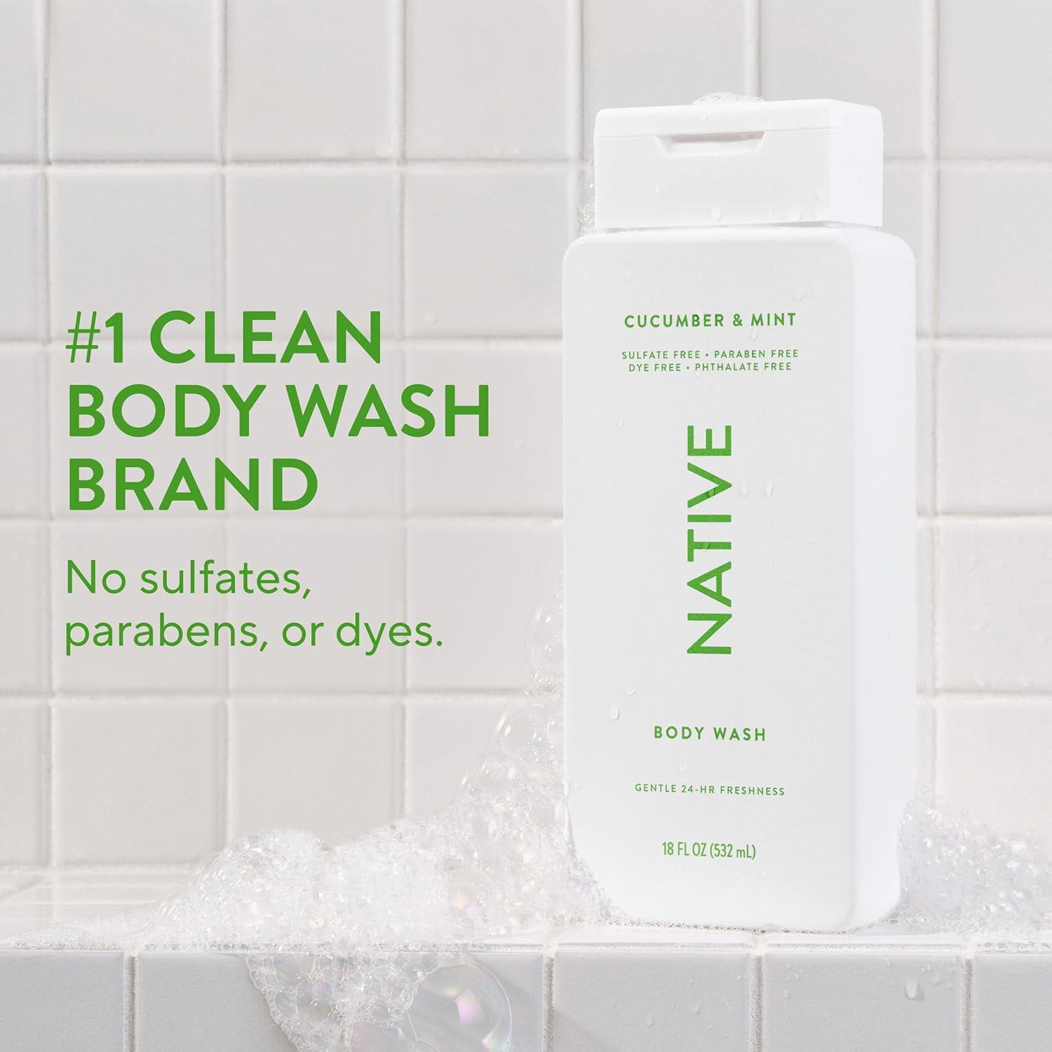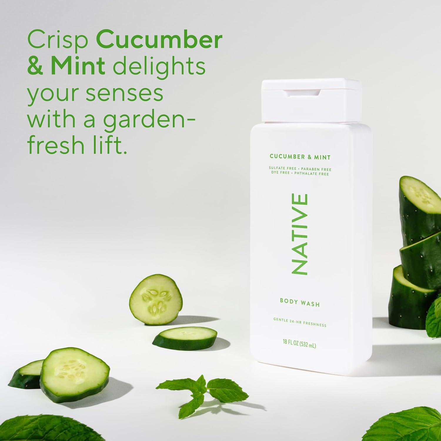 Native Body Wash Contains Naturally Derived Ingredients | For Women & Men, Sulfate, Paraben, & Dye Free Leaving Skin Soft and Hydrating | Sea Salt & Cedar 18 oz(Cucumber & Mint)