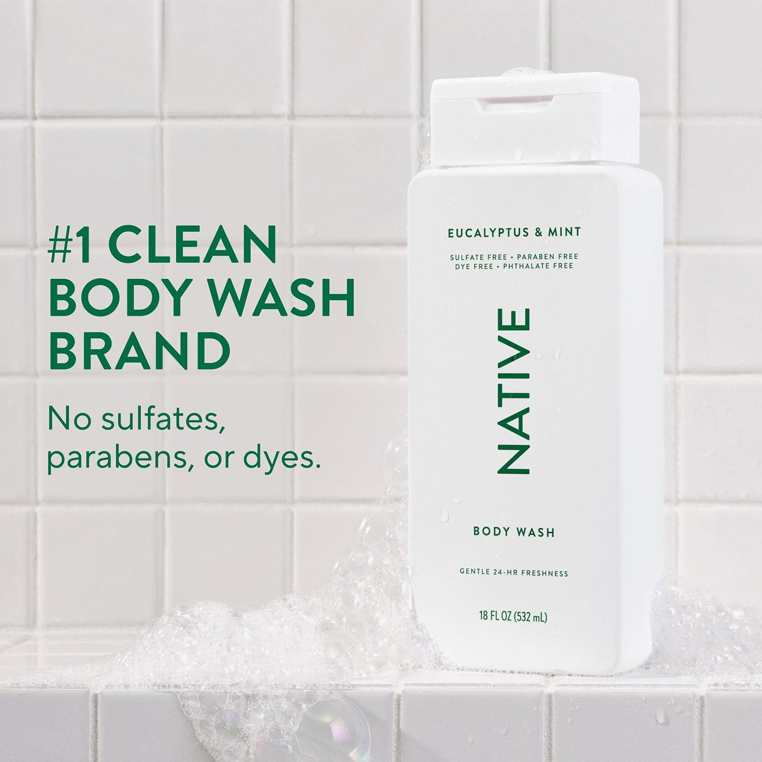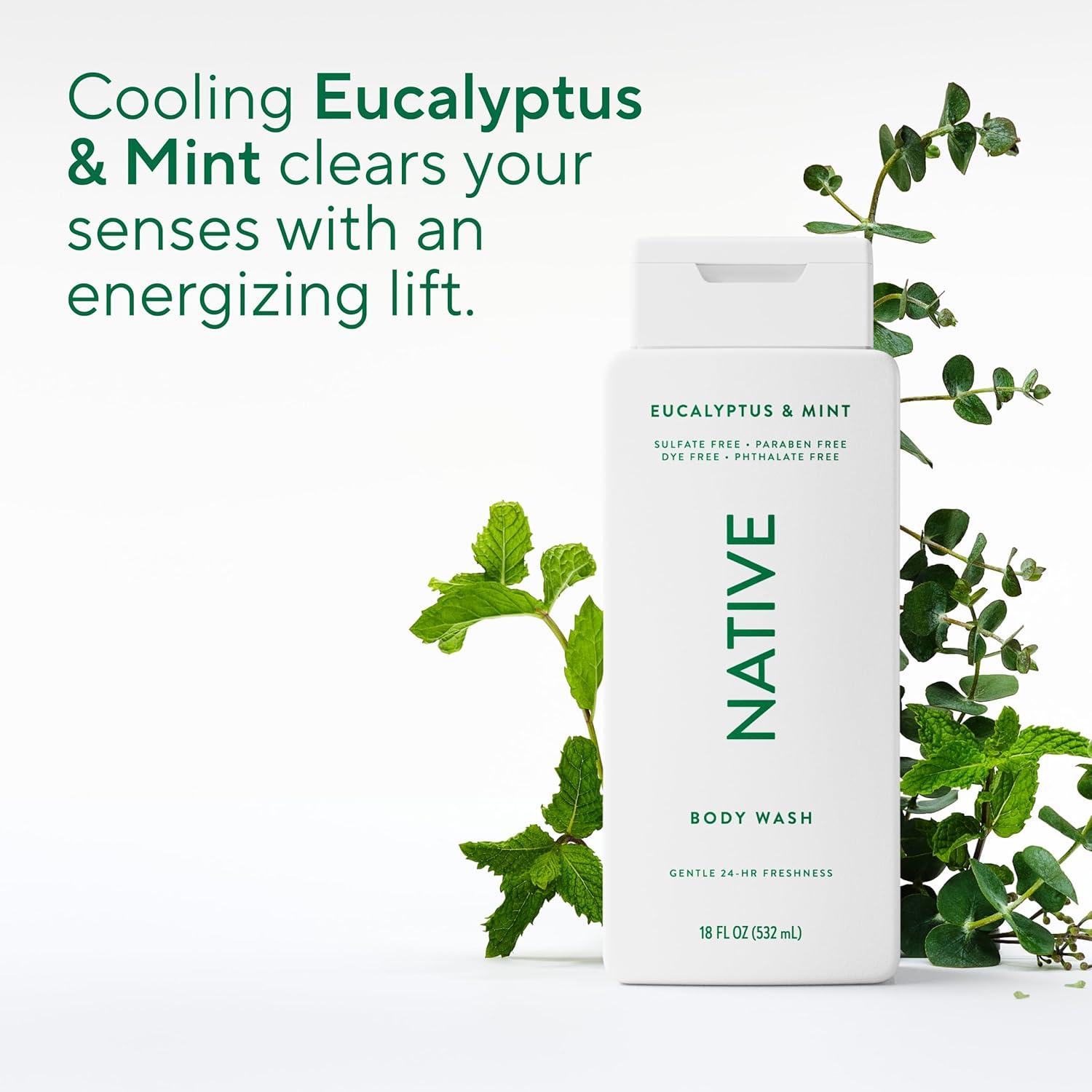 Native Body Wash Contains Naturally Derived Ingredients | For Women & Men, Sulfate, Paraben, & Dye Free Leaving Skin Soft and Hydrating | Sea Salt & Cedar 18 oz(Eucalyptus & Mint)