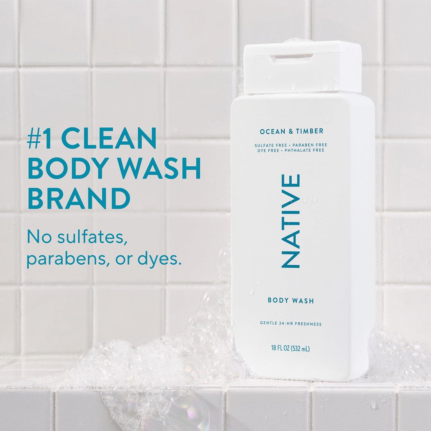 Native Body Wash Contains Naturally Derived Ingredients | For Women & Men, Sulfate, Paraben, & Dye Free Leaving Skin Soft and Hydrating | Sea Salt & Cedar 18 oz(Ocean & Timber)