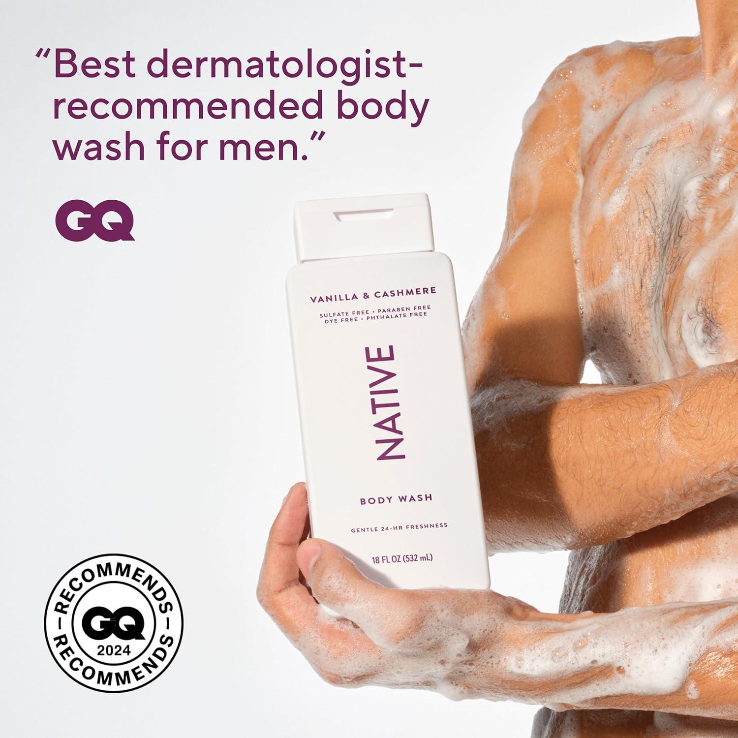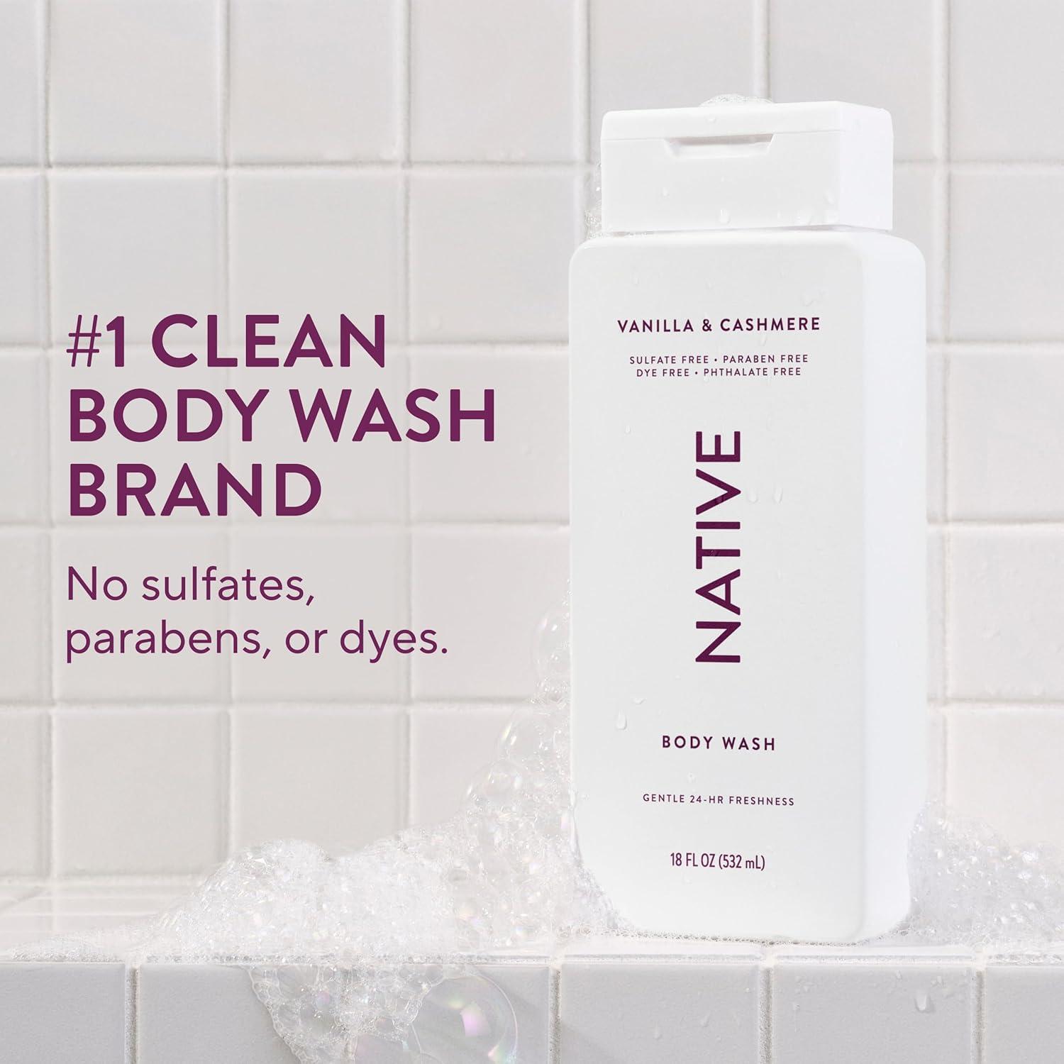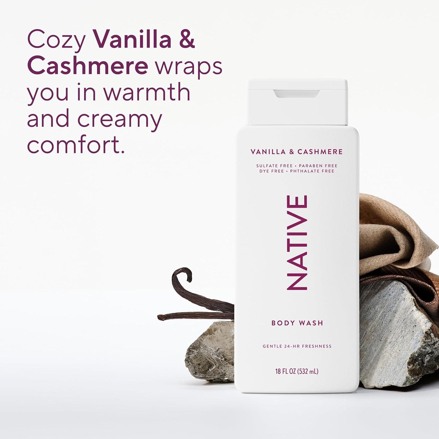 Native Body Wash Contains Naturally Derived Ingredients | For Women & Men, Sulfate, Paraben, & Dye Free Leaving Skin Soft and Hydrating | Sea Salt & Cedar 18 oz(Vanilla & Cashmere)