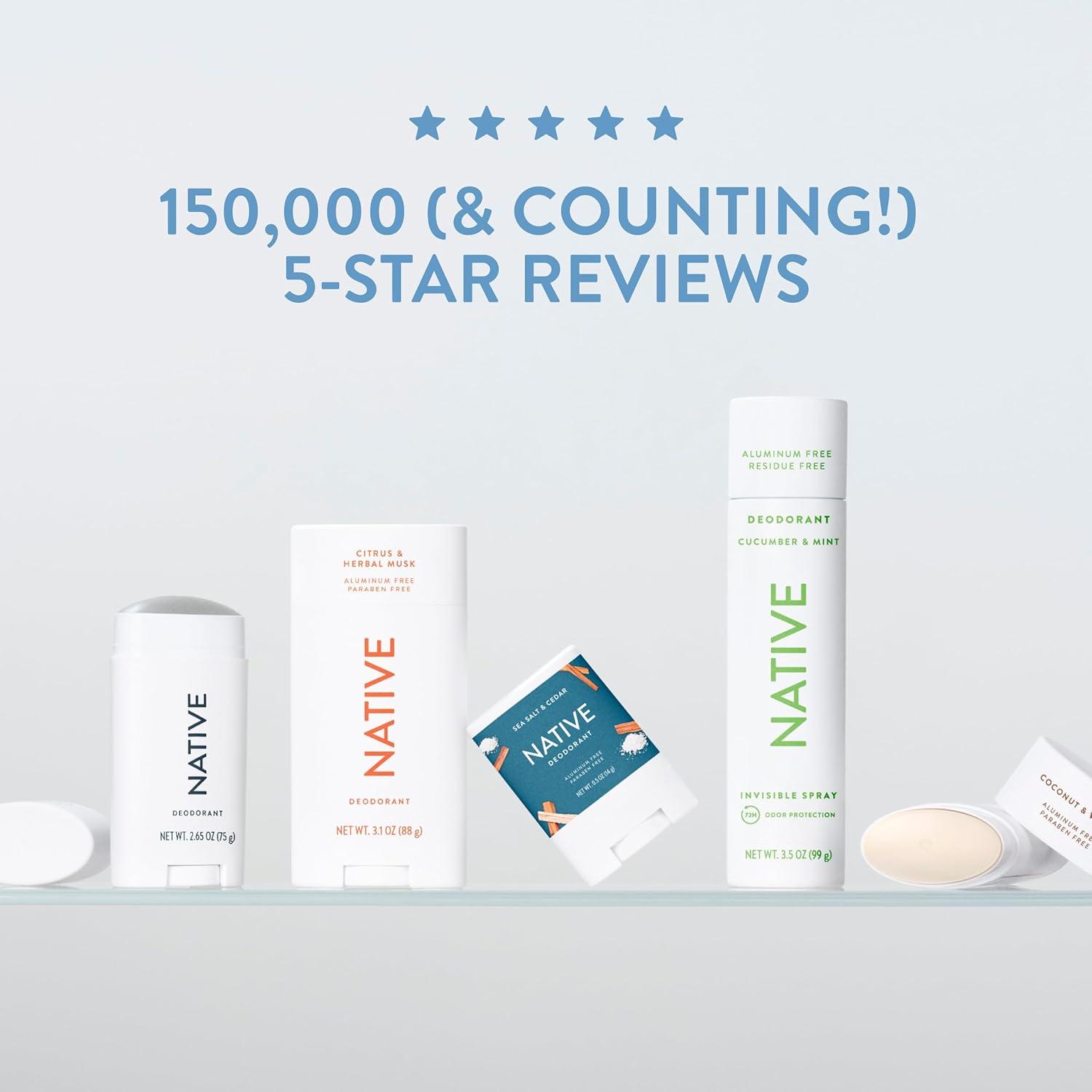 A couple swipes of this naturally derived Native Deodorant go a long way, delivering effective odor protection for up to 72 hours. Free of aluminum salts, parabens, and phthalates, this deodorant stick is thoughtfully made with less than 10 clean ingredients to fight unpleasant underarm smells, so you never have to worry. Native Deodorant includes baking soda to neutralize odors and shea butter for a smooth application. All of the ingredients work together to keep you smelling (and feeling) fresh. This clean deodorant isn't greasy or sticky, and feels dry when applying. Formulated for men and women, this award-winning formula is strong enough to work on anyone's pits, period.