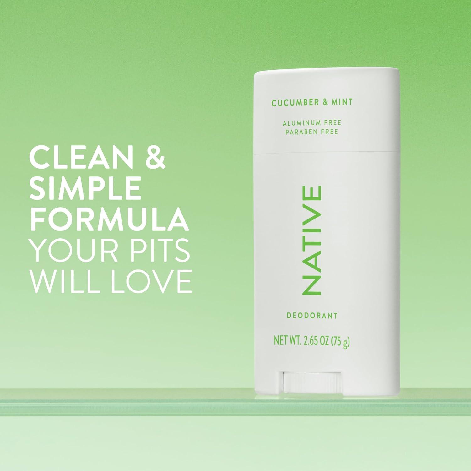 Native Deodorant,Unscented, Aluminum Free, Paraben Free, 2.65 OZ (75 g), Coconut Oil and Shea Butter(Cucumber & Mint)