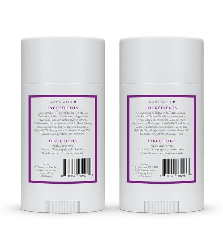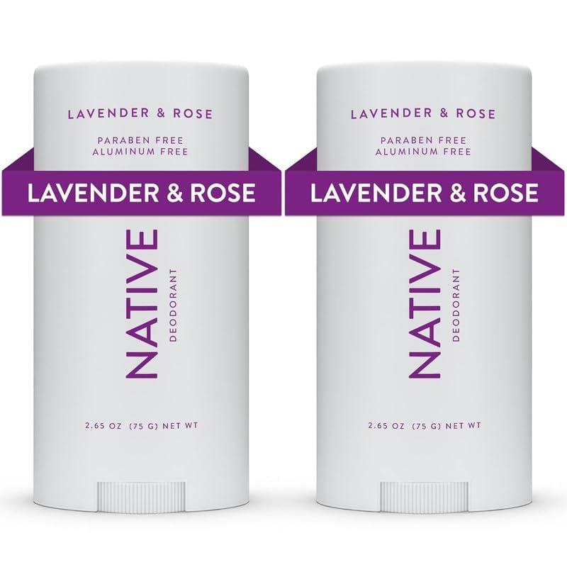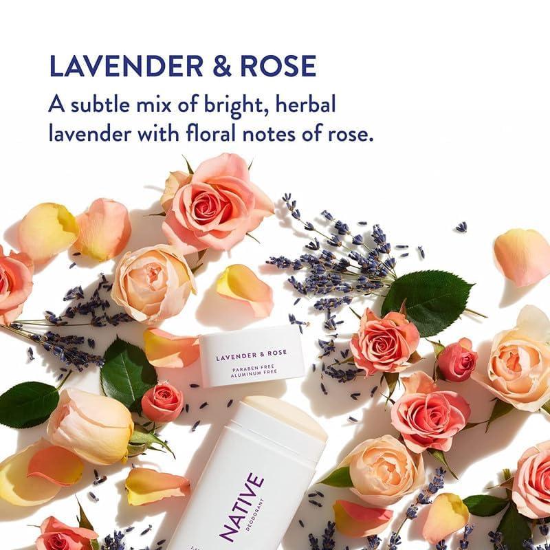 Native Deodorant,Unscented, Aluminum Free, Paraben Free, 2.65 OZ (75 g), Coconut Oil and Shea Butter(Lavender & Rose – 2 Pack)