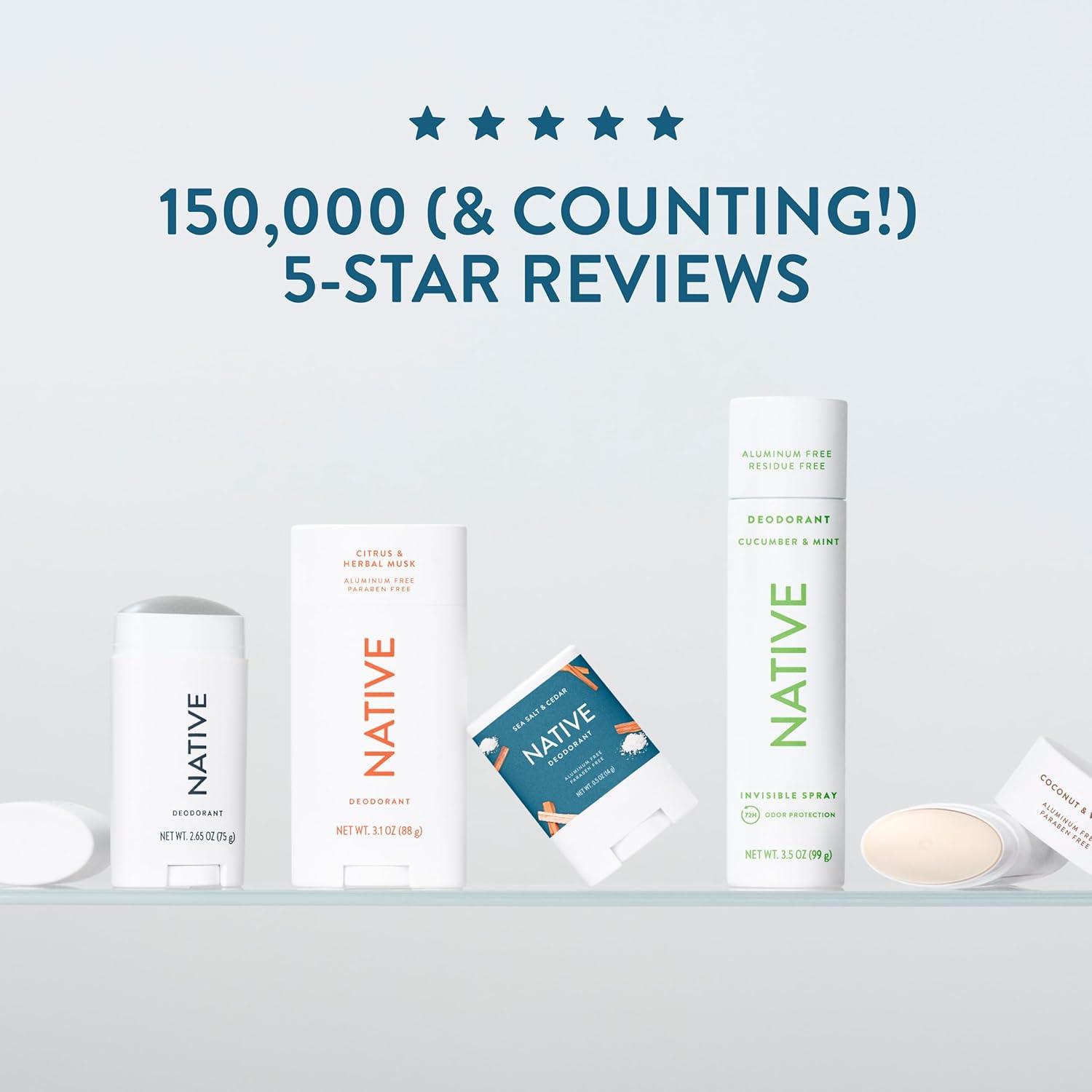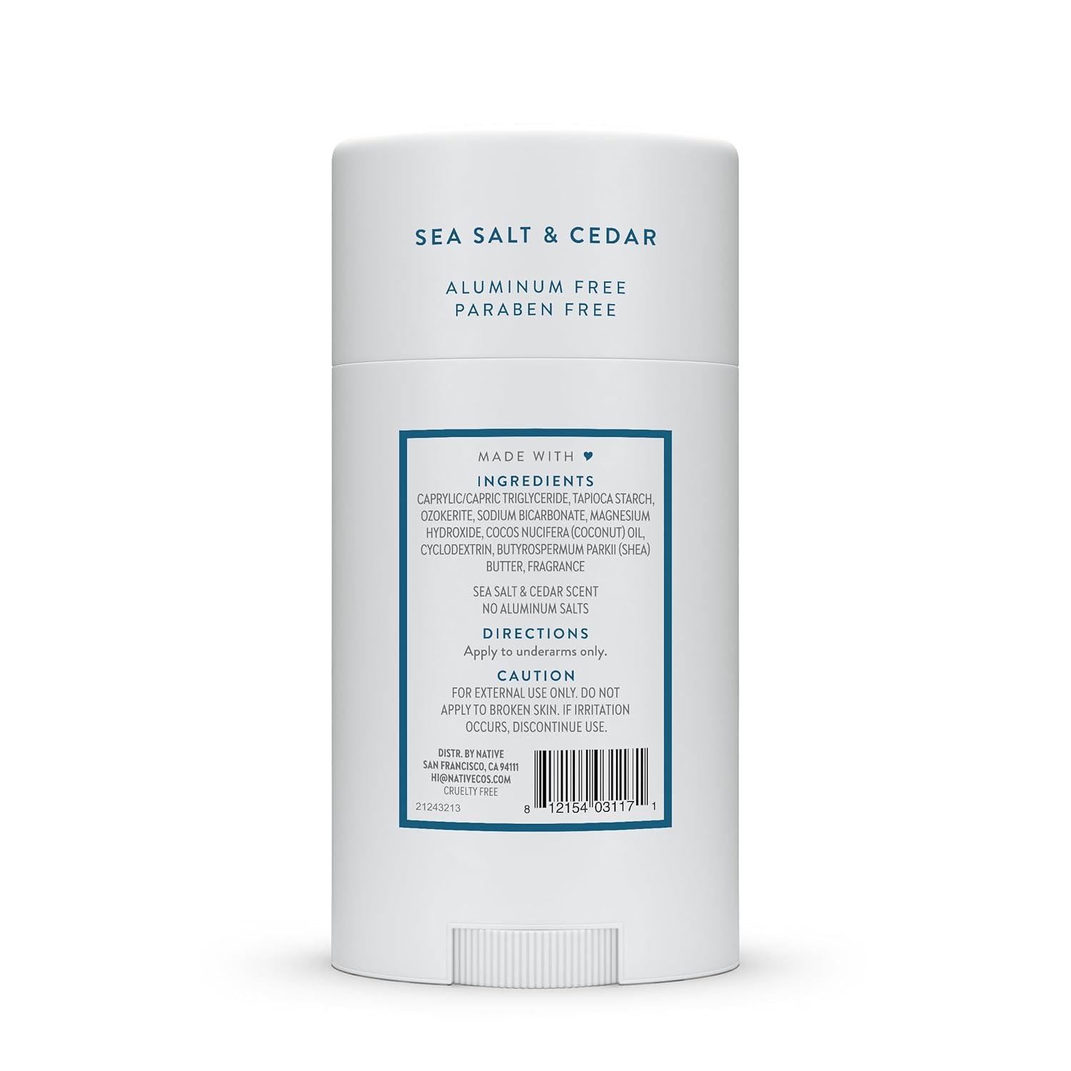 Native Deodorant,Unscented, Aluminum Free, Paraben Free, 2.65 OZ (75 g), Coconut Oil and Shea Butter(Sea Salt & Cedar)