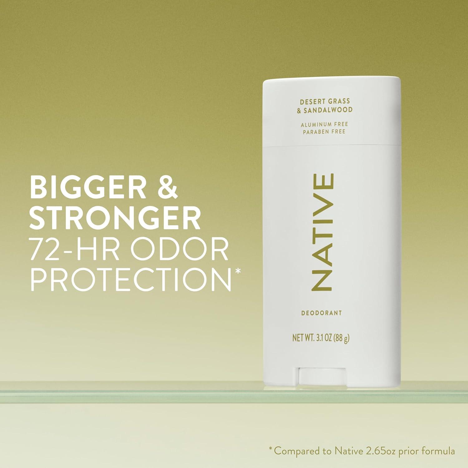 “A couple swipes of this naturally derived Native Deodorant go a long way, delivering effective odor protection for up to 72 hours. Free of aluminum salts, parabens, and phthalates, this deodorant stick is thoughtfully made with less than 10 clean ingredients to fight unpleasant underarm smells, so you never have to worry. Native Deodorant includes baking soda to neutralize odors and shea butter for a smooth application. All of the ingredients work together to keep you smelling (and feeling) fresh. This clean deodorant isn't greasy or sticky, and feels dry when applying. Formulated for men and women, this award-winning formula is strong enough to work on anyone's pits, period. Native: Clean. Simple. Effective. Like all Native products, this deodorant stick provides a delightful personal care experience that really works. Complete your self-care routine with Native's full range of products including hair care, body wash, and moisturizing lotion.”