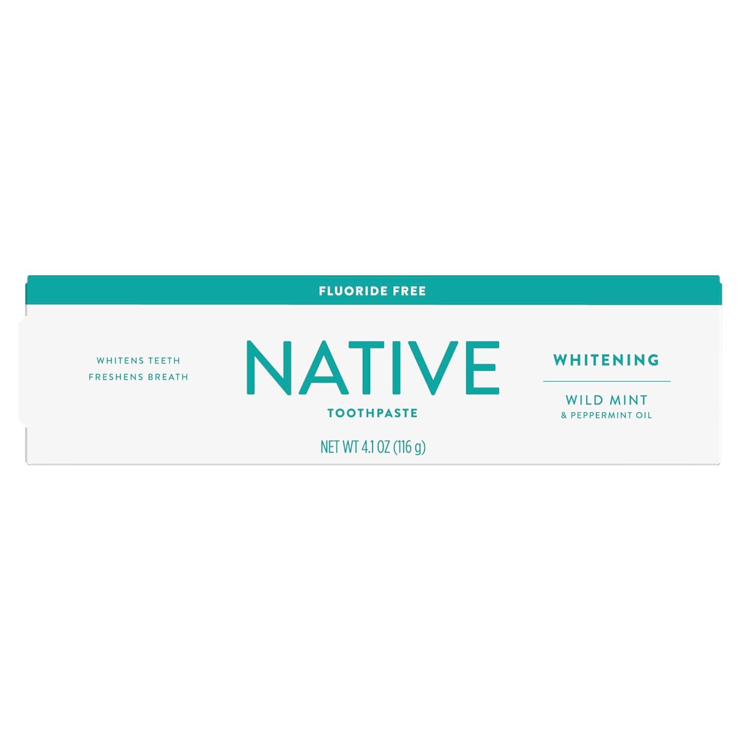 WHAT YOU GET: Three 4.1oz tubes of Native Fluoride Free Whitening Toothpaste in Wild Mint & Peppermint Oil Flavor.
