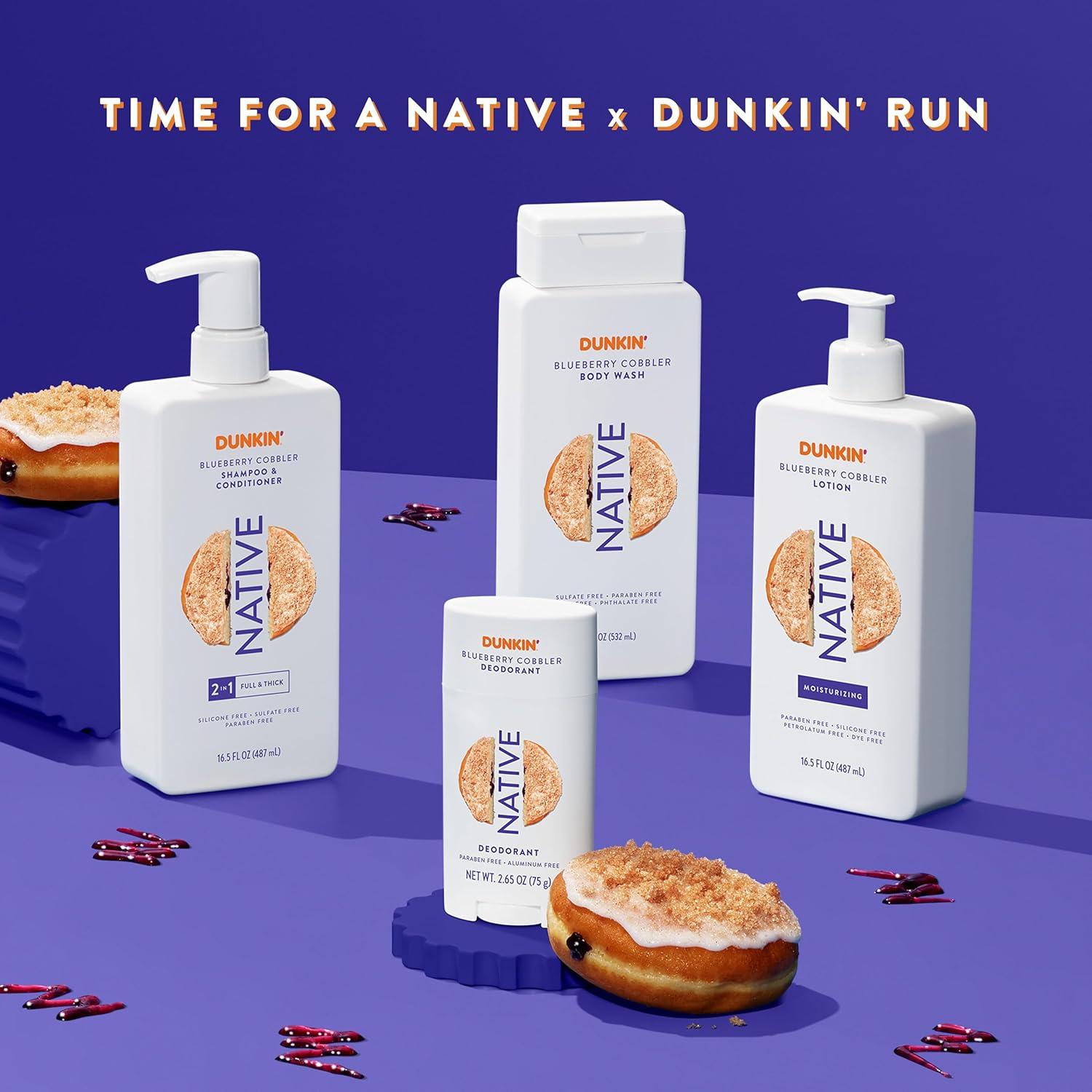 Start your day the right way with Native x Dunkin’. This limited-edition collection of irresistibly delicious Strawberry Frosted, Vanilla Sprinkle, Blueberry Cobbler, and Boston Creme scents will give you the kind of clean you crave. Free of sulfated surfactants, parabens, phthalates, and dyes, these delightful formulas deliver a luxurious lather in the shower and leave skin feeling moisturized when you step out of it. It’s an in-shower experience you donut want to miss.