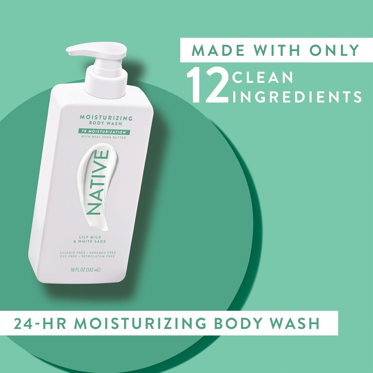 Native Moisturizing Body Wash Contains Naturally Derived Ingredients | For Women & Men, Sulfate, Paraben, & Dye Free Leaving Skin Soft and Hydrated | Shea Butter & Almond 18 oz(Lily Milk & White Sage)
