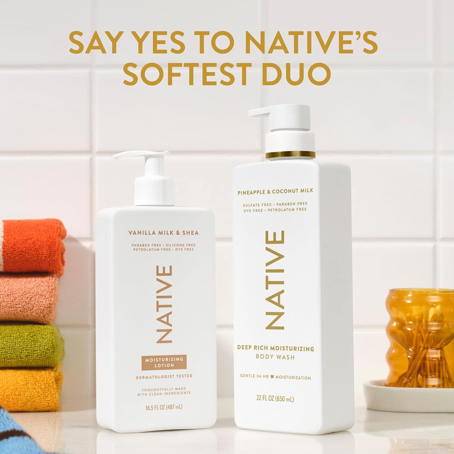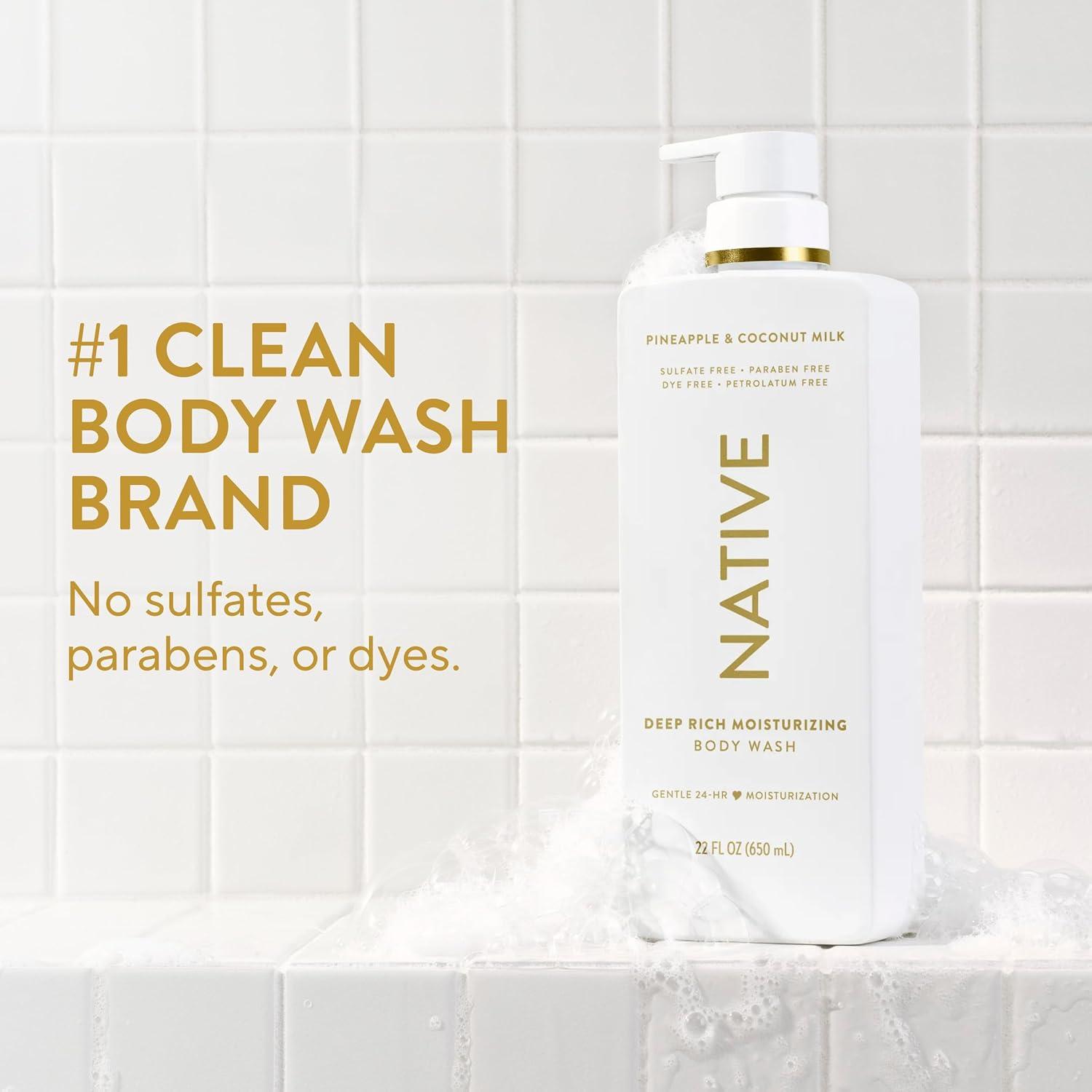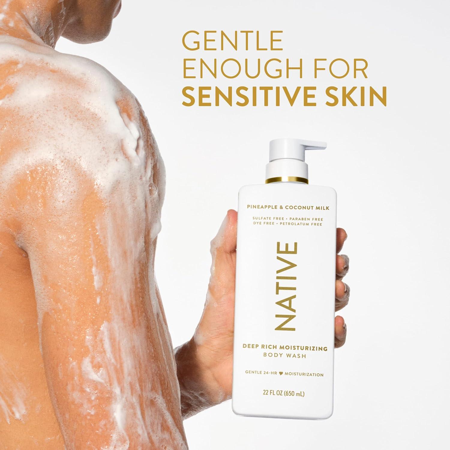 “Say bye to dry skin with Native 24-Hour Moisturizing Body Wash. Infused with real shea butter, this luxurious body wash leaves your skin feeling soft, smooth, and hydrated all day long. Free of sulfates, parabens, petrolatum, and dyes, this body wash for men and women provides 4x moisturizers on skin* compared to leading moisturizing body wash. It's also thoughtfully made with 12 ingredients for a soothing cleanse that's great for all skin types. The rich, creamy suds help lock-in moisture, so your skin feels replenished after you rinse. Let the refreshing scent turn your shower into a happy escape. Singing while you wash is highly recommended. Native: Clean. Simple. Effective. Like all Native products, this 24-hour moisturizing body wash provides a delightful personal care experience. Complete your self-care routine with Native's full range of products including deodorant, hair care, and moisturizing lotion. *compared to leading moisturizing body wash”