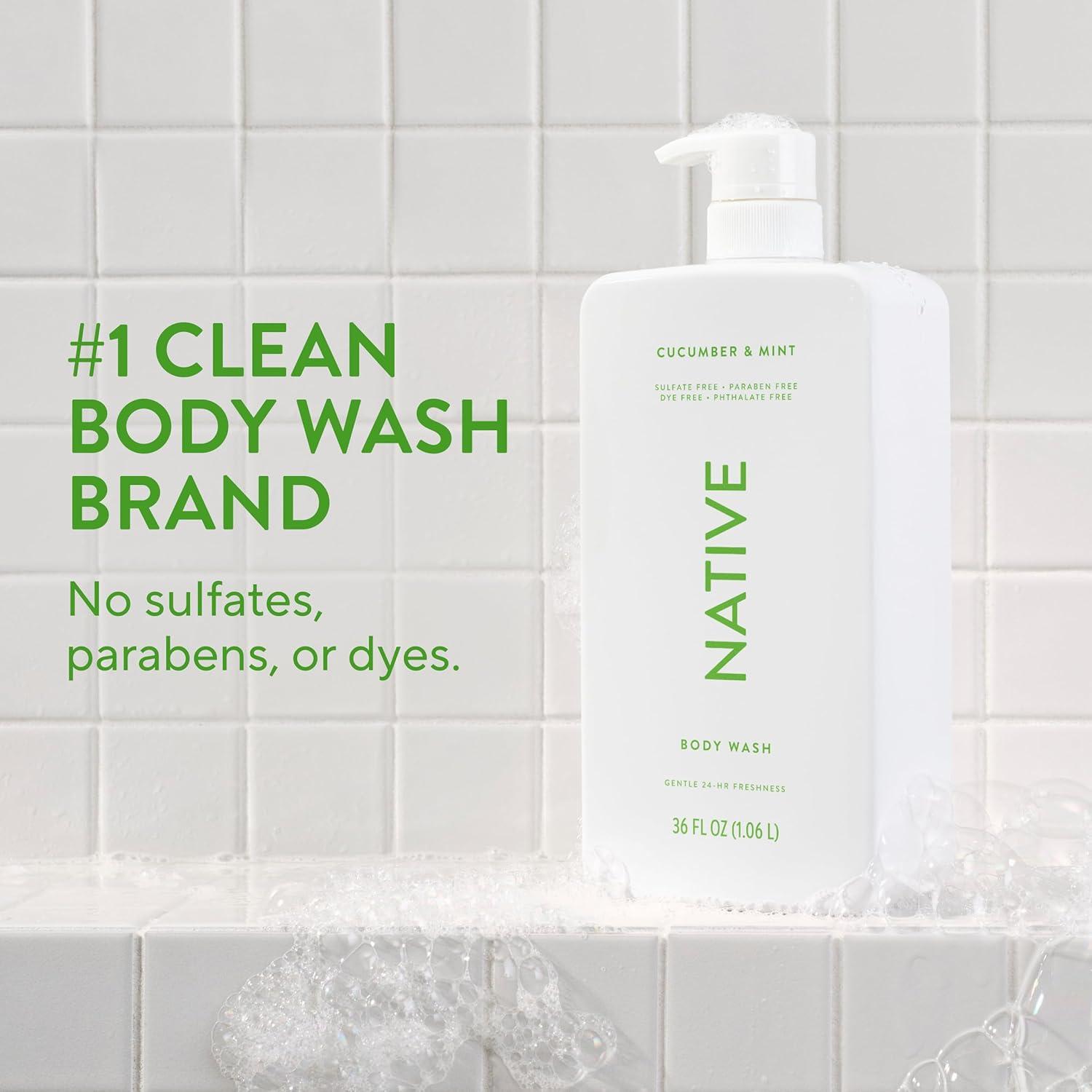 Native Sulfate Free Body Wash Contains Naturally Derived Ingredients | for Women & Men| Sea Salt & Cedar, 36 oz(Cucumber & Mint)
